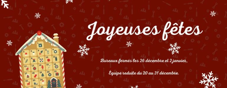 - Du 20 au 31 décembre, nous restons ouverts avec une équipe réduite, ce qui peut entraîner des délais légèrement plus longs.
